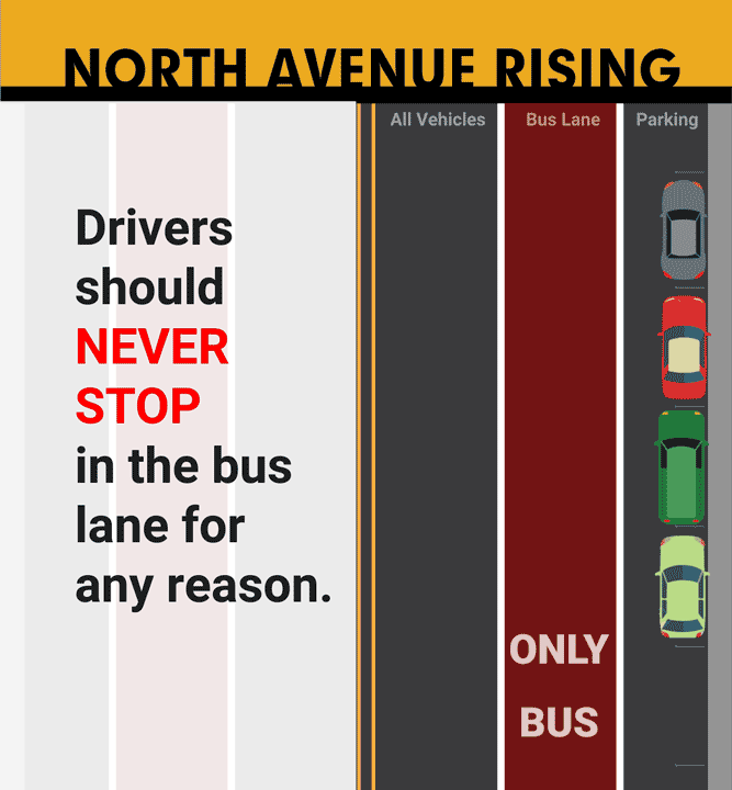 The new dedicated bus lanes along North Avenue reduce bus travel times, provide better bus reliability, and protect buses from traffic congestion.